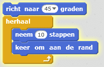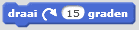 Sleep nu het blokje, zoals je hieronder ziet, naar het scriptveld en zet het boven de draai 180 graden blokje.
