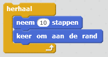 Sleep het blokje, zoals je hieronder ziet, en dat onder Besturen staat (gele kleur), naar het scriptveld en zet het om de andere 2 blokjes heen.