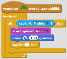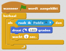 zorg er nu voor dat de bal kaatst op het plankje (nieuw script voor de bal).