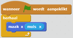 Door Muis x in Maak x 0 te zetten, zorg je ervoor dat het groene plankje alleen van links naar rechts te besturen is en niet omhoog en omlaag. Sleep het groene plankje naar onderen, zodat het onderin blijft staan tijdens het spel.