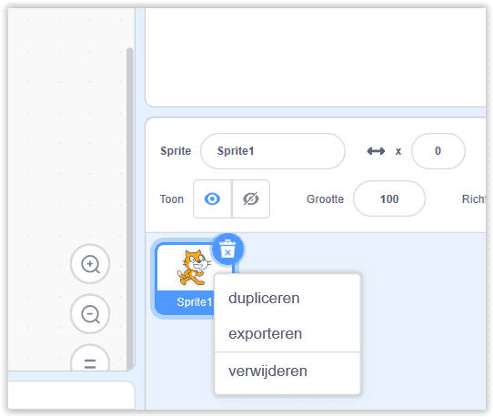 Klik bij Nieuwe Sprite op Kies Sprite uit bibliotheek.