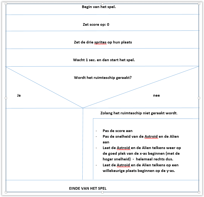 HET BEWEGEN VAN DE ALIEN EN DE ASTROID HEB JE GEPROGRAMMEERD EN KUN JE TIJDENS HET SPEL NIET MEER BEINVLOEDEN.