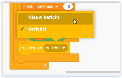 Plaats in de lege regel het blokje “zend signaal beriht1” uit “gebeurtenissen”.