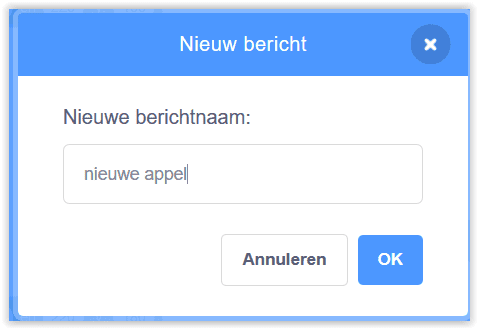 Klik op het driehoekje achter “bericht1” en klik dan in het venstertje dat verschijn, op “Nieuw bericht”. Dan verschijnt er een nieuw venster en geef het nieuwe bericht de naam: “nieuwe appel”.